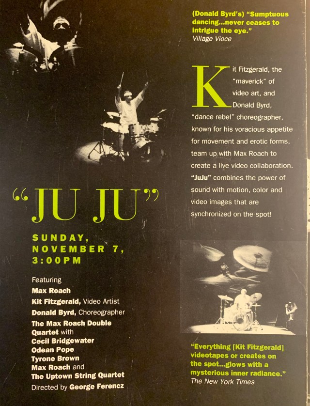 JUJU JUJU, with Max Roach (music) & Donald Byrd (choreography) Performances: Serious Fun Festival, Lincoln Center, NYC 1994Aaron Davis Hall, 1993